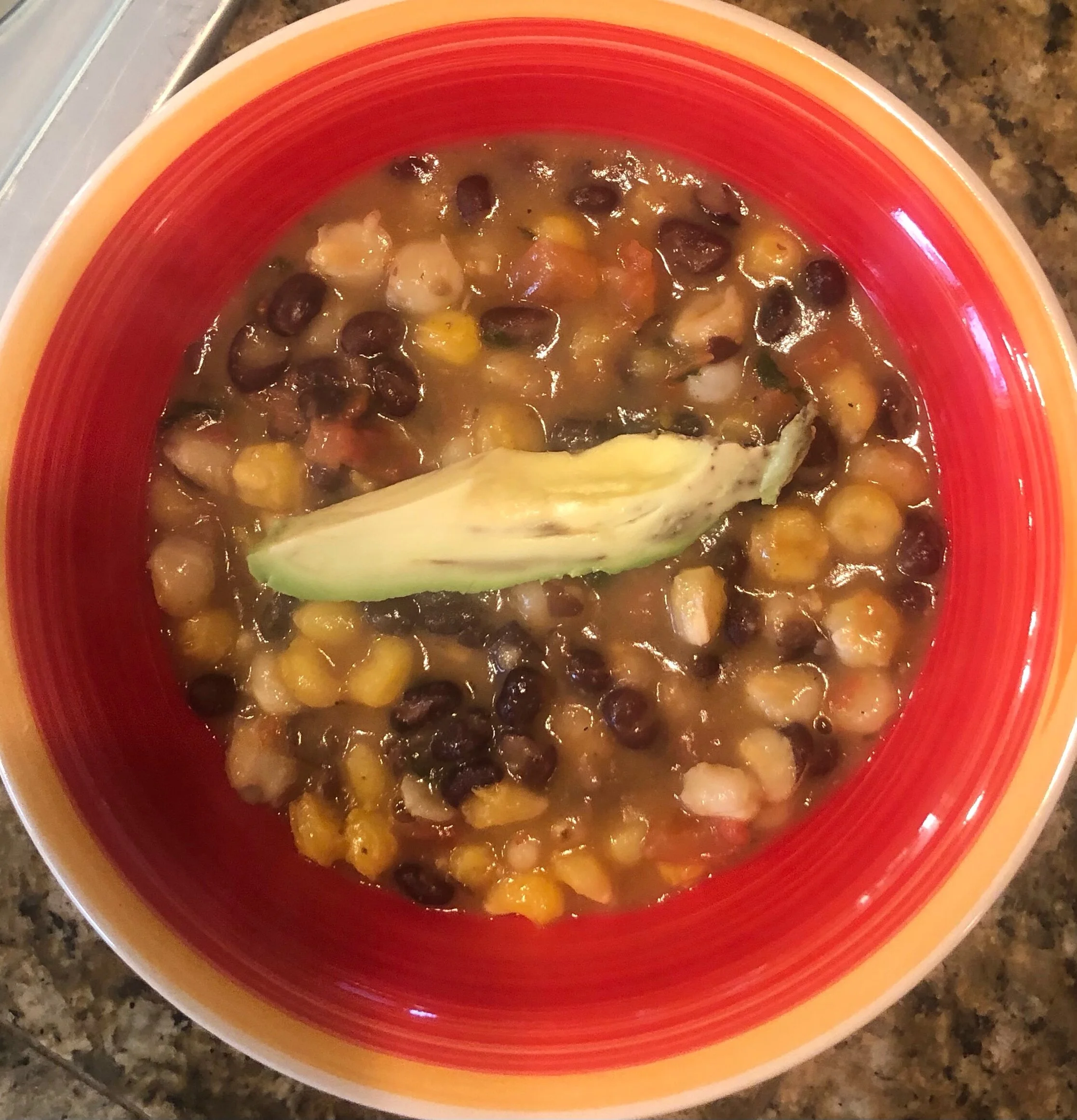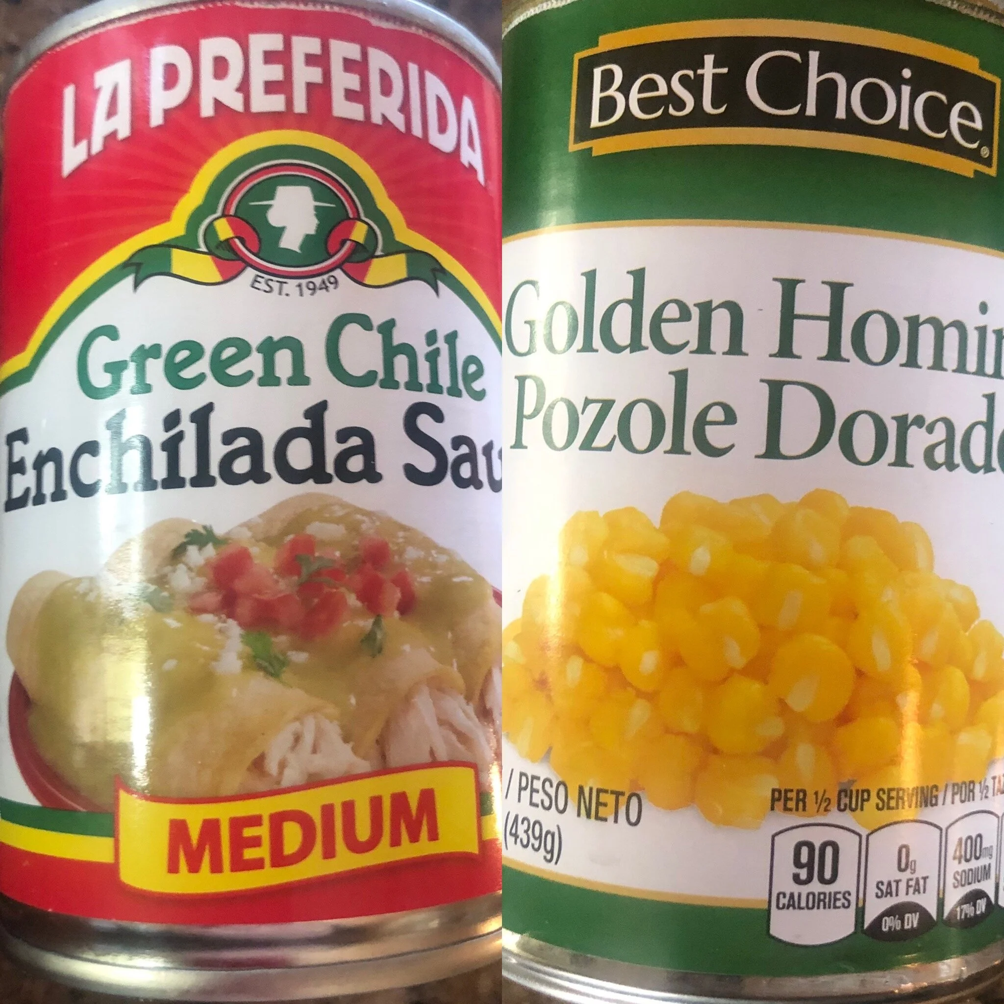 As a child, my favorite “vegetable” was hominy, with a slight preference for gold over white. I’ve always made hominy dishes and stews or posole without knowing that’s what it was. Tonight was a cheap but delicious spin on that. One can of golden and one can of white hominy, with the liquid. One can of green chile enchilada sauce and one can of black beans, drained. Three roma tomatoes, diced. For additional seasoning, juice from half a lemon (or lime), cilantro, some blackened spice and some chili powder. Never miss an opportunity to throw in an avocado slice or three.