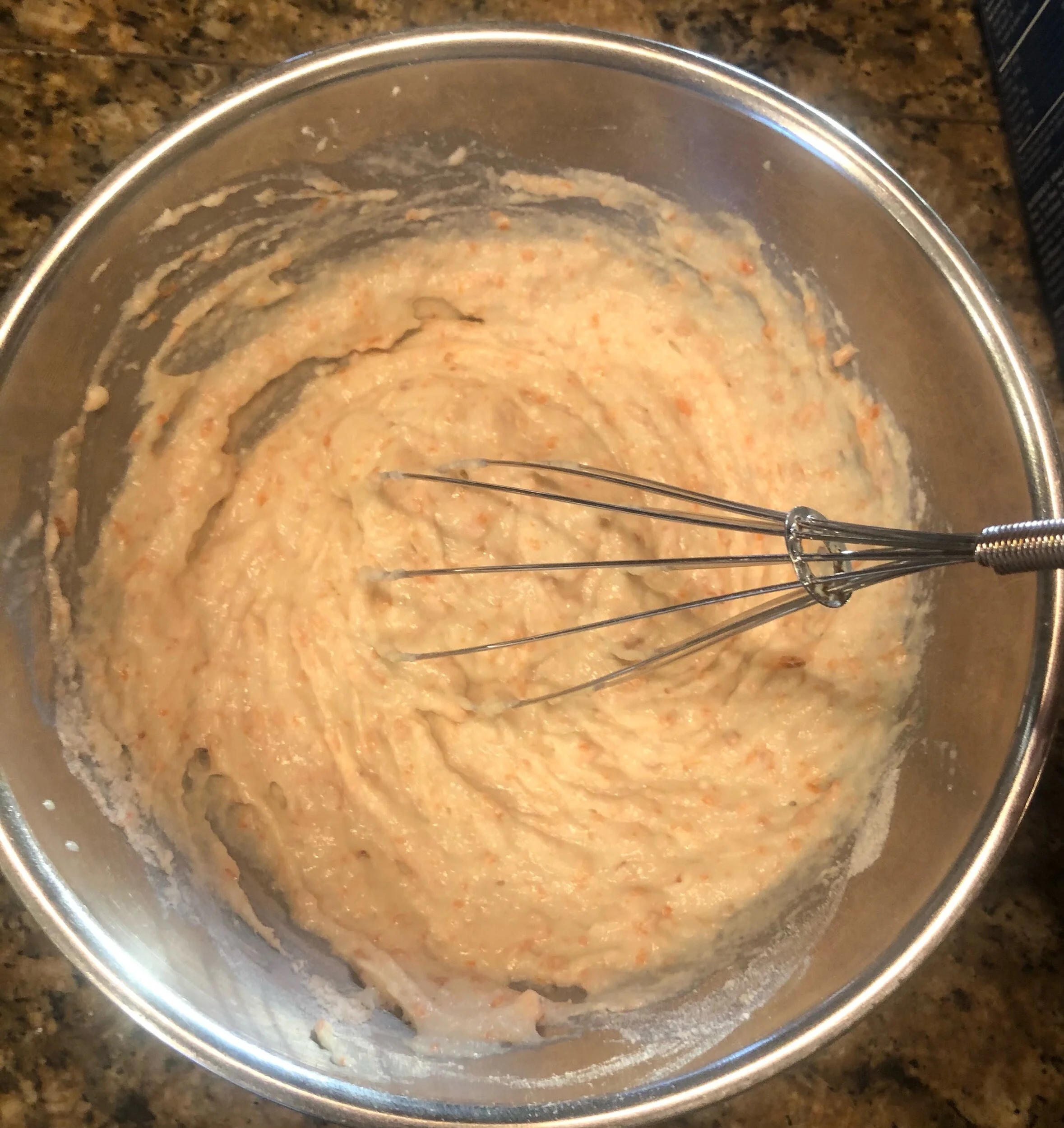 Mix up: 1 cup of gluten-free flour baking mix, 1 heaping table spoon of baking soda, 1/3 cup of apple sauce (instead of an egg), 1 cup of almond milk (instead of the dairy kind), 1/2 cup of carrot pulp left over from yesterday’s juicing and a small dash of raw brown sugar for some love. Served with vegan butter and small amount of pure maple syrup. If you don’t have carrot pulp to throw in, a thinly shaved carrot stick or some baby carrots for a few seconds in the food processor would do the trick too.