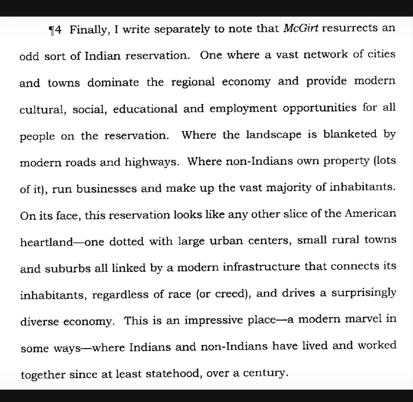 Here’s a screenshot from one of the concurring opinions about these “odd sort of Indian reservations”: